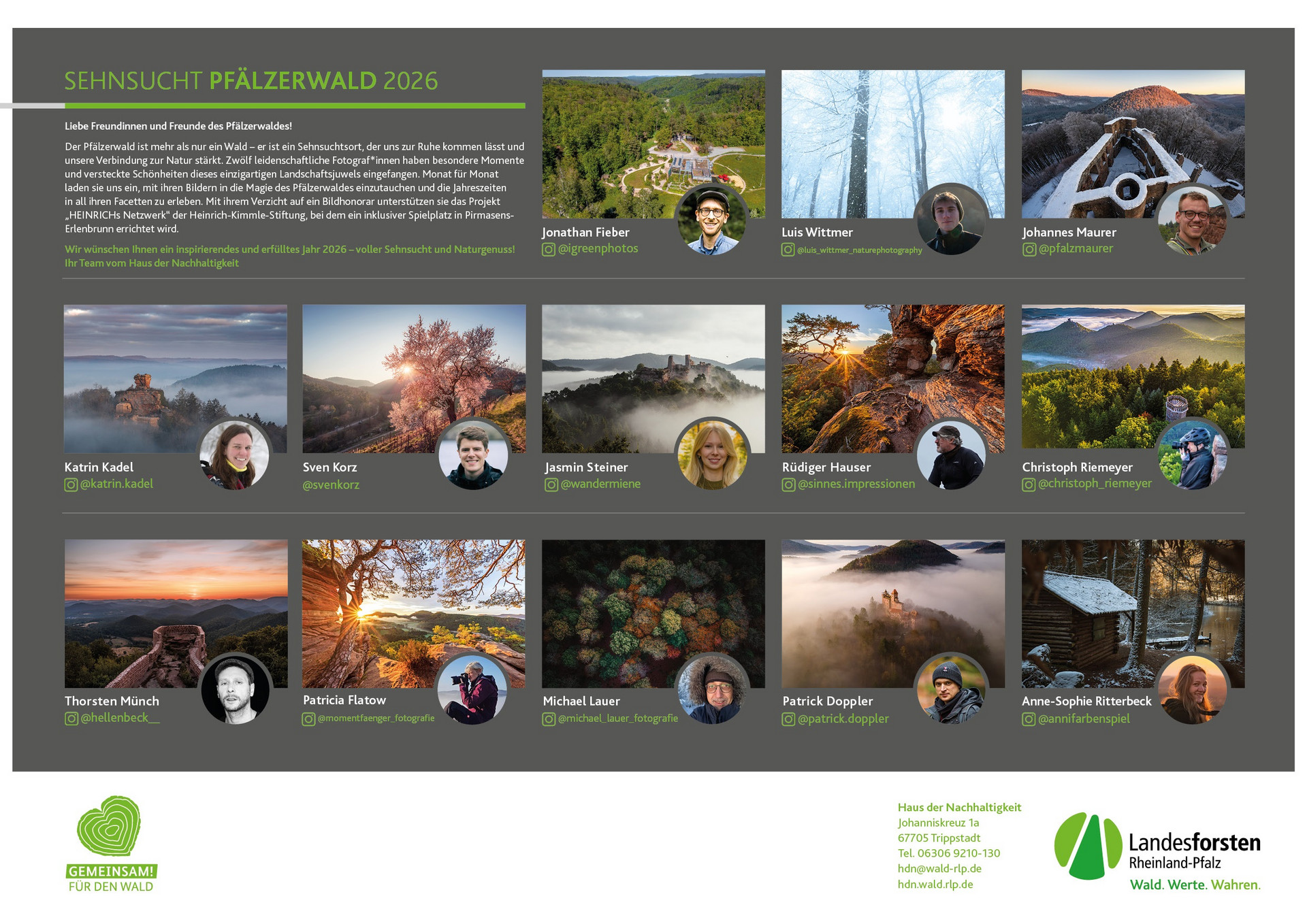 Rückseite des Sehnsucht Pfälzerwald Kalenders für das Jahr 2026
